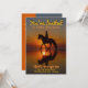 Themed dubbel sidinbjudan för härlig häst för någon som älskar hästar och har ett ridningparty eller händelse. Kanske att annonsera ditt stall eller logi. Silhouetted särdrag avbildar av person på rida längs stranden i en solnedgång. Elegant nog för någon ålder. Ändra texten för att göra denna toppna personligt och unikt. Om du ändrar koppformatet, kan placerar du behöva också att ändra det storlekt/av avbilda.