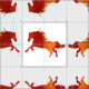 Hästar Polyester Weave (58 tum width) Fabric Beval horse silhouette i orange och rött. Anpassa bakgrunden till färg.