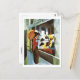 Ett vykort för bra med den tyska expressionistartistens målning, August Macke (1887-1914) med titeln Hat Shop (1914). En kvinna med orange parasolfönster som handlar på en hatt.