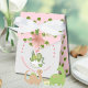 Send your guests home with a sweet treat in these adorable favor boxes! These boxes feature a charming watercolor hatching dinosaur wearing a sweet pink bow. The main part of the box has a whimsical green dino footprint pattern on a pink background, while the flap is adorned with a beautiful pink flower. They are perfect for filling with candies, chocolates, or small keepsakes as a thank-you to your guests. These favor boxes are an essential part of your matching "Girl Can Roar Too" collection and are a delightful way to complete your party theme!