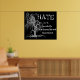 Bare träd med grenar och ord under vintern "HATE är en socialt överförd sjukdom".