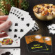 En skrämmande hemsökt gravgård med en uggla som genomsöktes i ett träd som också har en hängmans snara hängande från den. Bakgrunden är en orange himlar och det finns en fullt måne med fladdermöss som flyger över den. Mycket roligt och skrämmande design för dina Halloween-spelkort.