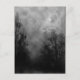 Ett skämt Halloween-himlar med misty träd längs en mörk hemsökt väg, gotiska ravens och en grumlig fullt måne.