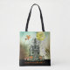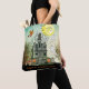 Bär med spookandan med det hemsökta huset Halloween till väskan med en fullt måne, flygande häxa, spöken, pumpor och fladdermus. En roligt och ett tillbehör för tricksbehandling, party favors eller vanliga fallfel. Par perfekt med matchande hemsökt hus Halloween-inbjudningar och party-förråd.
