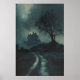 Haunted House on the Hill Dark Gothic Art Printable, Dark Academia Moody Landscape Halloween Decor Dark Cottagecore Moody Halloween Wall Art 1