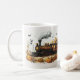 All aboard the spectral line! This beautiful Haunted Steam Train Mug features a vintage locomotive rolling through a field of pumpkins, accompanied by a friendly ghost and flying bats. A charming, watercolor-style mug perfect for railroad enthusiasts, ghost lovers, and cozy Halloween vibes!