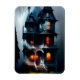 Gå in i Halloween-atmosfären med den här hemande bilden av en förträfflig Victorian-manor. Denna kylkonstruktion fångar mystiken i ett hemsökt hus som är höljt i dimma och skugga. Den höga glöden från fönstren står i kontrast till mörken, med en svindlande struktur som skapar en känsla av spänning. Den här designen är perfekt för Halloween-entusiaster.