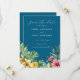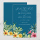 Detta moderna, eleganta havsblåa akvarell tropiska blommor och grönska foto bröllops kortsvarskort kan anpassas med din information i chic typografi. Designad av Thisisnotme©