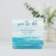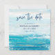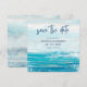 Dela din goda nyhet och gör en ståtlig entré med denna "Hav Blå Strand Vågor" Rädda Datum-kort. Oavsett om du planerar ett destination- eller strandtematiskt bröllop, kommer denna kustdesign med akvarellhavsvågor i nyanser av tropisk turkos och lugna blå toner att få dina gäster att bli upphetsade inför din stora dag. Konst av KL Stock.