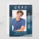 Ett elegant, dubbelsidigt examensbevis byggt kring djupa havsblåa färger och geometrisk färgblockering - med en fönsterram med guldtrim för ett foto på framsidan och en ren layout för festdetaljer på baksidan. Designat för den som vill ha något polerat och minnesvärt, fungerar det vackert både som ett minnesvärt meddelande och en formell festinbjudan som skickas till familj och vänner. Den skiktade blåa paletten och den djärva "GRAD"-bokstavsformen ger det en självsäkerhet som de flesta mallar helt enkelt inte har.