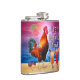 Hönan i detta humoristiska flaskor vet vilken tid det är - det är tid att dricka, naturligtvis, därför att det är coctailtid! Denna enfaldiga tropiska design är perfekt för någon som älskar havet och hönorna och margaritorna och paradiset och den ändlösa sommaren. Den visar en tupp som gal med färgrika drycker för en koppla ihop, och en para av solglasögon. Tuppstativen på sanden bredvid hav och en vibrerande solnedgång. I bakgrunden flyter handflatanormbunksblad och livliga fruktskivor täckande i himmlen med en drömlik look, därför att klart denna tupp har haft lite för mycket som ska drickas. Denna design är perfekt för en sommarstrandsemester, en resa till en tikipub - eller den fega coopen.