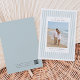 Meddela ditt kommande bröllop med dessa eleganta 'spara datum'-kort från Redwood and Vine Design Co, med ett vertikalt foto mot en klassisk pinstriped bakgrund i mjuk kustnära sjögrön och krispig vit. Anpassa baksidan med ytterligare text och en anpassad QR-kod som leder till er bröllopswebbplats för mer information.