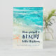 Vem skulle inte vilja ha lite salt luft och sand mellan tårna under högtiderna? Skicka dina vänner och familj dina Hav och hälsningar med detta kustinspirerade kort som har akvarellmotiv med turkosa tropiska havsvågor, sand, sjöstjärna och en "Ha en strandig liten jul"-text i marinblått. Den nedersta textraden kan anpassas. Konst av KL Stock