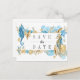 Hav och strand Blå Guld sommar bröllop Spara datum vykort med sjöhästar, sjöstjärnor, snäckor och korallrev. För mer avancerad anpassning av denna design, Klicka på "Anpassa"-knappen ovan! Matchande artiklar finns också tillgängliga.