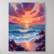 Hav Solnedgång Akvarell Strand Kust Poster