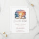 "Ocean Sunset Photo Beach Chairs Wedding Save the Date" är ett vackert tillverkad och personlig save-the-date-kort som perfekt fångar romantiken och skönheten i en strandbröllop. Kortet har ett fantastiskt fotografi av två strandstolar som blickar ut över en lugn solnedgång över havet, vilket skapar en drömlik och intim atmosfär.