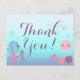 Tacka vänner, familj och gäster med detta tackkort för baby shower. Fira bebis tjej med en rolig undervattens tema baby shower med havsdjur! Perfekt för en strandbaby shower eller bara en naturlig vatten tema. Turkosblå, lila och korallrosa maneter, val, fisk, sjöhästar, sjöstjärna, sniglar och bubblor. Flickbaby shower tackkort är bra för den feminina tjejen med en svaghet för mode och modern stil.
