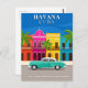 En vintageinspirerad Havanna vykort med stadens berömda koloniala byggnader, palmer och en klassisk retro bil. Perfekt för resenärer, vykortssamlare eller någon som älskar kubansk kultur och Havannas livfulla charm.