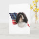 USA! Amerika! Ropa din pride med denna patriotiska bakgrund för den enorma flagga med denna AKC-hund aveln Havanese i förgrunden. Visa din pride med denna design på enskjorta, en mugg och mycket, mycket mer!