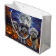 Släpp upp spookandan med den här eerie Halloween-designen med en hundar-förpackning under en mörk, månbelyst himmel, omgiven av flygande fladdermus och glödande pumpor. Perfekt för dem som kärlek en aning skrämmande roligt med sina hårigets vänner!
