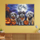 Släpp upp spookandan med den här eerie Halloween-designen med en hundar-förpackning under en mörk, månbelyst himmel, omgiven av flygande fladdermus och glödande pumpor. Perfekt för dem som kärlek en aning skrämmande roligt med sina hårigets vänner!