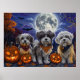 Släpp upp spookandan med den här eerie Halloween-designen med en hundar-förpackning under en mörk, månbelyst himmel, omgiven av flygande fladdermus och glödande pumpor. Perfekt för dem som kärlek en aning skrämmande roligt med sina hårigets vänner!