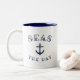 Ahoy! Lägg segeln med vår skarpa nautiska design med "Haven på dagen" i marinblå skrift med en frakts ankarillustration i mitten.