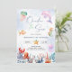 Roligt och färglös 1:a födelsedag "ONEder the sea""-inbjudan med vattendjur, bubblor och ljusblå vattenfärgsbakgrund stänk.