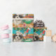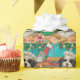 Fånga helgdag glädje att baka med den här härliga scenen med en glad kock omgiven av julgransar och festliga dekorationer. En hjärteberande firande av årstidens sötaste traditioner.