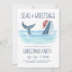 Julfesten Nautisk julfest bjuder in inbjudningskort till "en val av bra" och har en vattenfärgval med en julhatt som simmar i havet med ljus som dekorerar svan. Rubriken "Seas & Hälsning" och party kan vara personlig. Art av KL Lagrar