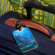 "Ocean's Smile" Denna sjudande undervattensscen visar en graverande delfin som glider igenom kristallklar blå vatten, badad i solljus uppifrån. Delfinen är omgiven av ömtåliga bubblor, svällande havsgräs och färglös korall mitt i rörelse, dess mjuka kropp och milda uttryck som ger en känsla av intelligens och lekhet. En stjärnfisk vilar på havet golv nedanför, vilket gör att det lugnande sjölandskapet blir mer detaljerat.