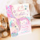 Skapa vågor med detta förtrollande sjöjungfru-födelsedags-kort "spara datumet", perfekt för ditt lilla barns speciella firande. Med pastellrosa och lila nyanser, fantasifulla snigelskal, koraller och en glittrande sjöjungfrus svans, sätter denna undervattensdesign tonen för en magisk fest. Perfekt för havstemanade födelsedagar, är det ett charmerande sätt att påminna gästerna om de kommande festligheterna. Personifiera med ditt barns namn, ålder och festdetaljer för att skapa ett minne som lyser lika starkt som havet.