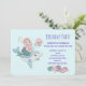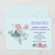 Födelsedagsinbjudan med en bedårande illustration. Designad med en söt havfrueflicka som rider på en glad delfin. En liten manet vän följer dem. Dekorerad med små stänk av falskt guldglitter.