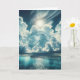Du tänker på ett kort för en vän eller familjemedlem. Vackra ai-konst som visar att sol lyser genom de fluffa molnen ovanför en underbar havsvy med en havsdocka.