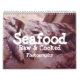 Detta är presentera för kalender fotograferar av rå och lagad mat skaldjur.