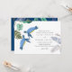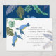 Blå, turkos och gula havssköldpaddor med tropiska blad pryder denna havs-, strandlivsbröllopsartikel. Textmallfält på båda sidor säkerställer att du kan lägga till alla dina ytterligare detaljer, inklusive svarsadress, gåvoregister, mottagningsdetaljer, vägbeskrivning med mera.