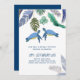 Bedårande havssköldpaddor och tropiska blad pryder denna moderna havsliv-strand-tema bröllopsdetalj, en del av en större samling. Färgtemat här är levande blått och gult.