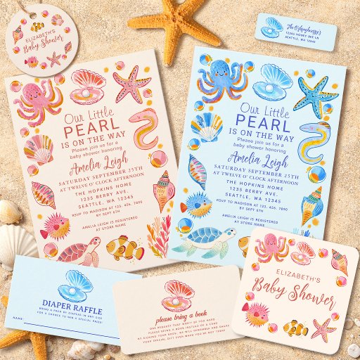 Denna söta havspärlor som omger pappra egenskaper hos söta havslevande varelser och sjöhäckar i rosa. Perfekt för födelsedagar och babyduschar. Anpassa efter dina behov. Du hittar fler matchande produkter i min butik.