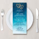 Havsblå vattenfärg Vinkarare med monogram Bröllop Meny