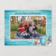 Ett stort bildkort i söt marint blått med ett tropiskt tema för helgdag - ELLER ta lätt bort stjärnfisken. Ett enkelt hälsning på framsidan kan anpassas, med text på baksidan för ett hälsning och namnteckning. Rustiskt trä i tropikblått med vit stjärnfisk och boll träd-prydnadsämnen gör vågrät ram för ditt foto.