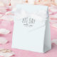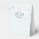 Designad att samordna med Lea Delaveris Design's big day getaway'-samlingen, är den här ljusblå bröllopsboxen perfekt för alla tropiska strandbröllop. Den har en roligt men klassliknande behandling med anpassade namn och datum.