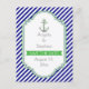 Tunga blått, vitt rand och ankare Kelly grönt nautiskt bröllop spara datum vykort. En snyggt i elegant strimlade mönster med marint, vitt diagonalt rand, ett grått-ankare med ett hjärta och rep från Kelly grönt kärlek och din text i ram med en grönt. Modern men med en vintage ser ut på sätt och vis. Du kan ändra bakgrund och text som du väljer i Zazzle färg-diagram i färg. Den här klassdesignen är en fullständig mall för anpassade och ingår i en bröllop-perfekt för ett sommarbröllop eller ett strandbröllop.
