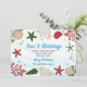 Skicka semesterhälsningar till familj och vänner med det här helgdag vid snyggten. Utformningen har en vattenfärgsdesign under vatten och flera havsbottnar i färg tillsammans med personligens anpassningsbar hälsning och namn. Finns i röd, blå eller grönt design. Design ©Rosalind Moore