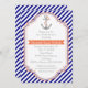 Marint blått, vitt rand och ankarplats vid sjön bröllop inbjudningskort för möhippan. En elegant snyggt strimlade mönster med marint blått, vitt diagonalt rand, ett grått-ankare med korallhjärta och rep från orangen och din text i ram med korallbanderoll. Modern men med en vintage ser ut på sätt och vis. Du kan ändra bakgrund och text som färg väljer från över 200 färger i diagrammet Zazzle färg. Den här klassdesignen är en fullständig mall för anpassade och ingår i en bröllop-perfekt för ett sommarbröllop eller ett strandbröllop.