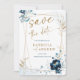 Havsblått och Guld Bröllop spara datum Inbjudningar