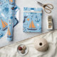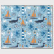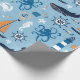Temat för havs- och nautiska områden har valar, segelbåtar för orange, bläckfisk, krabbor, sjöar, fraktas hjul, ankare, fyrar och mycket annat på söt ljusblå bakgrund.