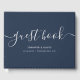 Gästteckensnitt för elegant, marinblått och silver bröllop, bok med modernt skript. Matchande objekt är tillgängliga.