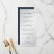 Menykort för elegant, marin blått och silver bröllop, med ett modernt skript. Matchande objekt är tillgängliga.