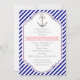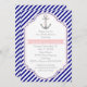 Marint blått, vitt rand och ankarplats vid sjön bröllop inbjudningskort för möhippan. En snyggt strimlade mönster-design med marint blått, vitt diagonalt rand, ett grått-ankare med rosa hjärta och rep och texten i ram med rosa. Modern men med en vintage ser ut på sätt och vis. Du kan ändra bakgrund och text som färg väljer från över 200 färger i diagrammet Zazzle färg. Den här klassdesignen är en fullständig mall för anpassade och ingår i en bröllop-perfekt för ett sommarbröllop eller ett strandbröllop.