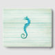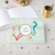 Det vackra strandtemat bröllop gäst bok, som utfördes i en grönt av marmelad, tvättade ut tittar träbakgrund. Grafik av turkos havshäst, en snäcka och koralledekorat runt det inramade textområdet. Anpassa brudgummen och brudgummens namn, för ditt badbröllop. Matchande produkter är tillgängliga.